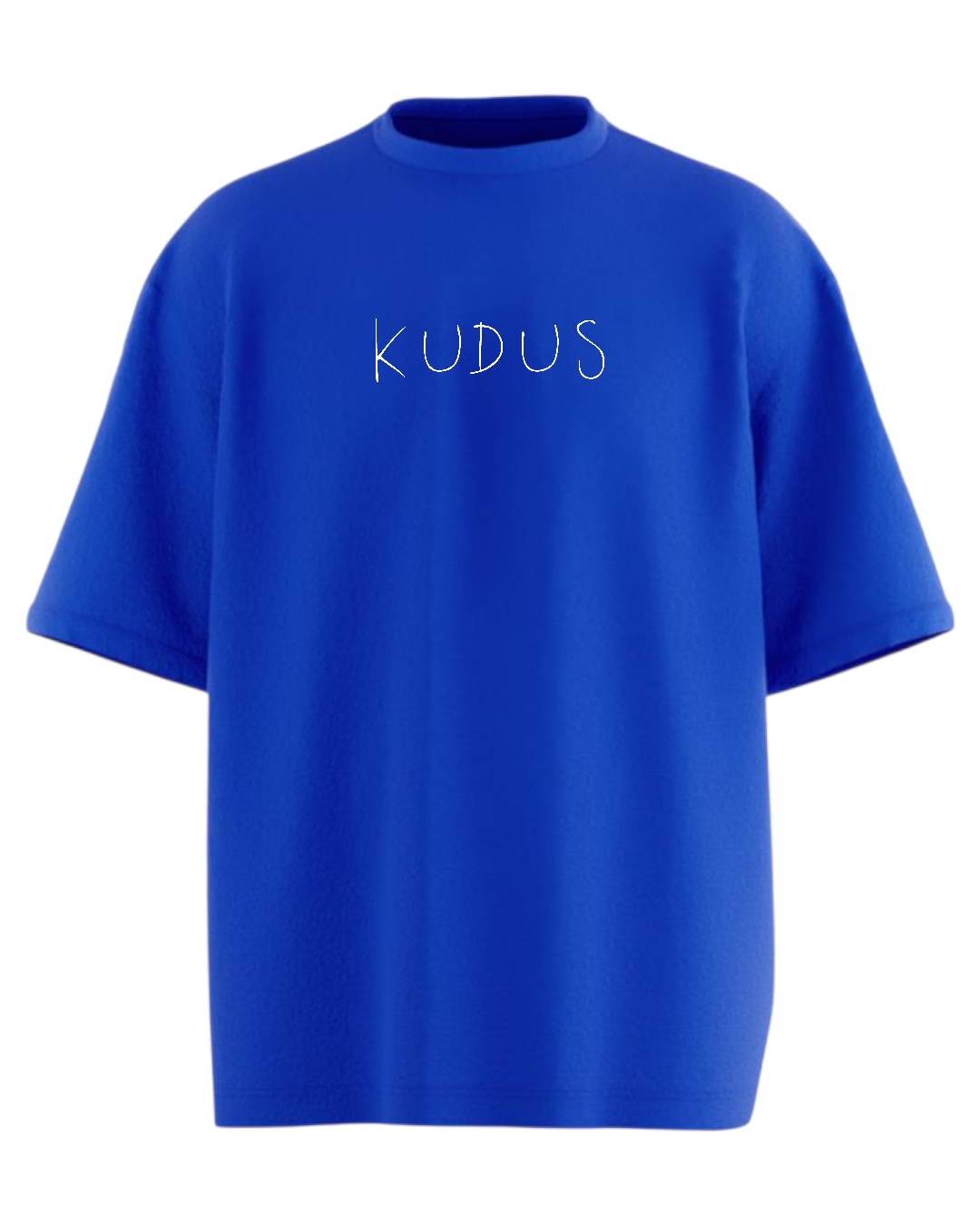 Introducing the Kudus ROYAL BLUE T-Shirt, an oversized tee crafted from premium HEAVY WEIGHT COTTON. This t-shirt features a ribbed crewneck collar and a unique finish.
