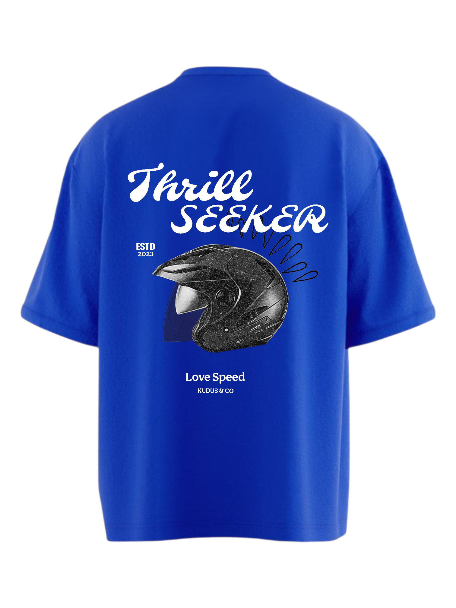 Introducing the Kudus ROYAL BLUE T-Shirt, an oversized tee crafted from premium HEAVY WEIGHT COTTON. This t-shirt features a ribbed crewneck collar and a unique finish.
